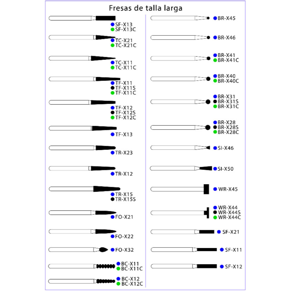 Fresa de diamante en diferentes tipos de grano y tamaños.